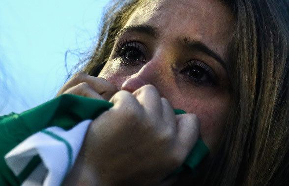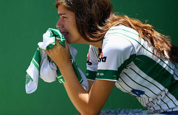 Para suporter Chapecoense berdatangan ke stadion Arena Conda. Sebagian besar tak sanggup membendung air mata mereka.
