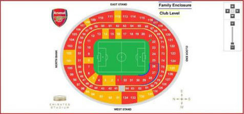 Namun begitu Bayern dipastikan menang 5-1, fans Arsenal ramai-ramai menjual kembali tiket mereka. Setidaknya fans di 18 sektor sudah bisa dibeli kembali (warna oranye).