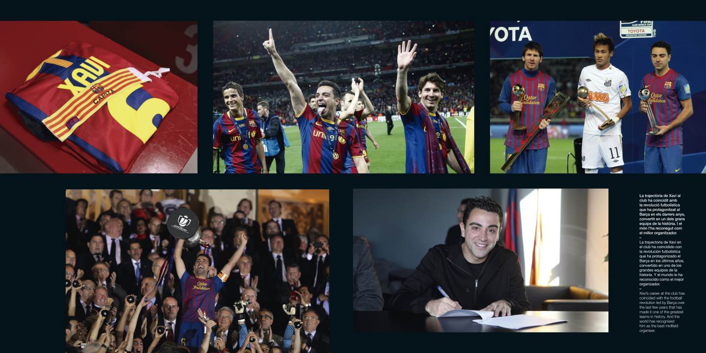 Terakhir, ada pula bagian khusus yang memuat rekam jejak perjalanan Xavi Hernandez di klub. Saat bersejarah di mana ia bergabung dengan tim di usia 11 tahun, hingga saat membawa Barcelona menjadi jura liga musim lalu. Semuanya dirangkum secara apik oleh Miguel Ruiz, fotografer resmi Barcelona.
