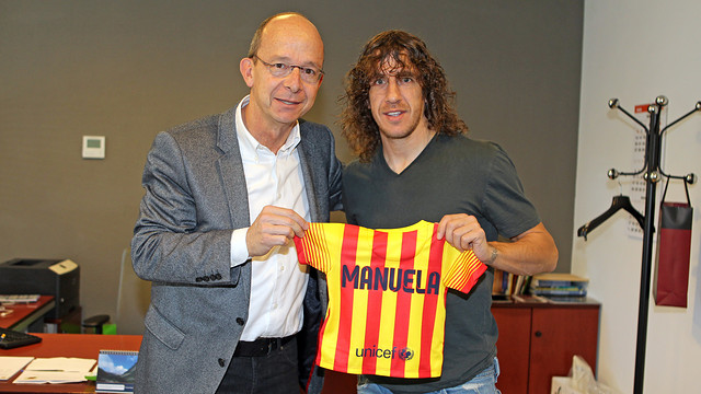 Bek sekaligus kapten tim itu disambut oleh wakil Presiden bidang sosial Barcelona, Jordi Cardoner. Puyol kemudian menerima replika kaus tim berukuran kecil dengan nama Manuela tercantum di bagian belakang. Namun kejutan terbesar muncul saat ban kapten kecil secar khusus diserahkan untuk menghormati jasa Puyol terhadap Barcelona.