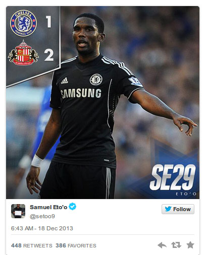 Tentu saja hal ini dianggap oleh fans Chelsea sebagai bentuk kesombongan Eto'o, yang mungkin merasa dirinya bekerja keras di laga tersebut. Tak lama kemudian ia langsung mendapat kecaman dari beberapa fans.