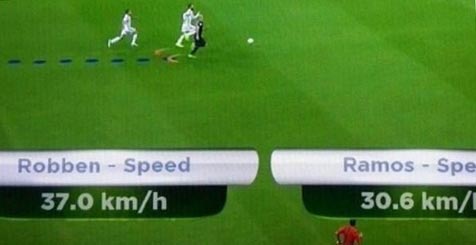 FIFA mencatat bahwa Robben berlari dengan kecepatan 37 kilometer per jam. Sementara itu, Ramos 'hanya' berlari dengan kecepatan 30,6 km/jam. Secara keseluruhan, Robben berlari sejauh 100 meter dalam 10,2 detik dalam proses gol itu.