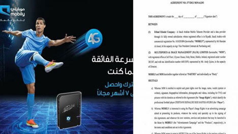 Ronaldo tak jarang mendapat bayaran dalam jumlah sangat besar untuk pekerjaan yang tak terlalu menguras tenaga. Salah satu adalah ketika CR7 membintangi iklan perusahaan telekomunikasi Arab Saudi, Mobily.