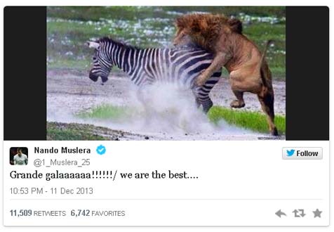 Melalui akun twitter pribadinya, Muslera mengungkapkan kegembiraannya. Ia meng-upload sebuah gambar yang menunjukkan seekor singa (menggambarkan Galatasaray) sedang menerkam seekor zebra yang tak lain adalah simbol dari Juventus.