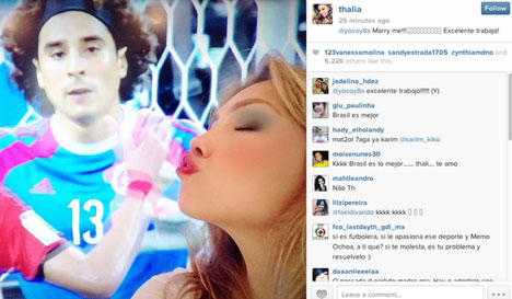 Ajakan itu diutarakan Thalia usai menyaksikan penampilan luar biasa Ochoa kala menjaga gawangnya dari gempuran Brasil di laga kedua Grup A Piala Dunia 2014 di Estadio Castelao, Fortaleza, Rabu (18/6) dini hari tadi.