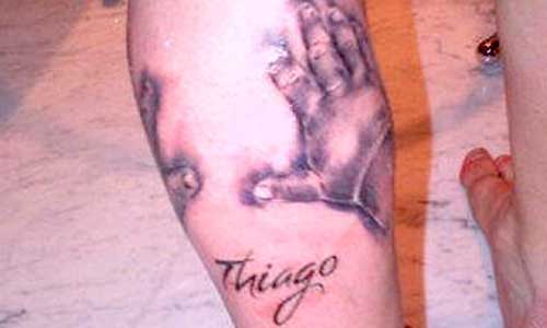 Tak lupa, Messi juga mengungkapkan rasa cintanya pada sang anak Thiago, dengan menjadikannya desain tato di kaki kanannya.