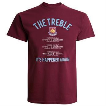 West Ham merilis kaos dan mug khusus karena berhasil meraih hattrick kemenangan melawan Tottenham sepanjang musim lalu. Bagi West Ham, itu sudah dianggap sebagai treble winners.
