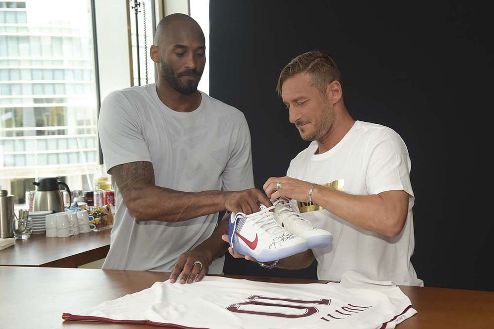 Kunjungan Kobe adalah bagian dari rangkaian Mamba Mentality Tour of Europe. Keduanya melakoni wawancara dan saling bertukar suvenir. Totti memberi Kobe jersey tandang terbaru Roma bertanda tangan dirinya, sedangkan Kobe memberi Totti sepasang sepatu sebagai hadiah.