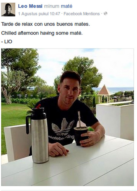 Kali ini, Messi mengunggah foto yang memperlihatkan dirinya sedang duduk santai menikmati segelas mate. Mate sendiri merupakan minuman khas negara Amerika Latin, seperti Argentina dan Bolivia, yang mengandung banyak kafein.