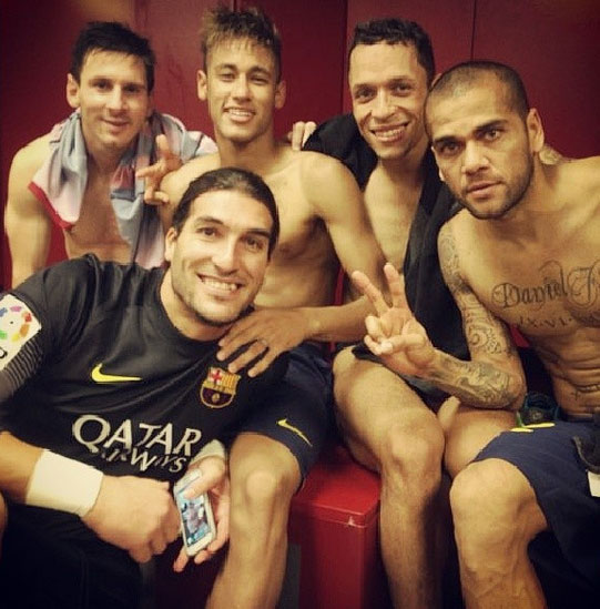 Seperti dilansir soccerly.com, Messi memposting foto di akun sosial media miliknya usai meraih kemenangan 2-1 dari Real Madrid di El Clasico. Dalam foto tersebut tampak Jose Pinto yang mengenakan seragam lengkap, Lionel Messi, Neymar, Dani Alves yang tak mengenakan atasan dan Adriano yang belum sempat mengenakan pakaian.
