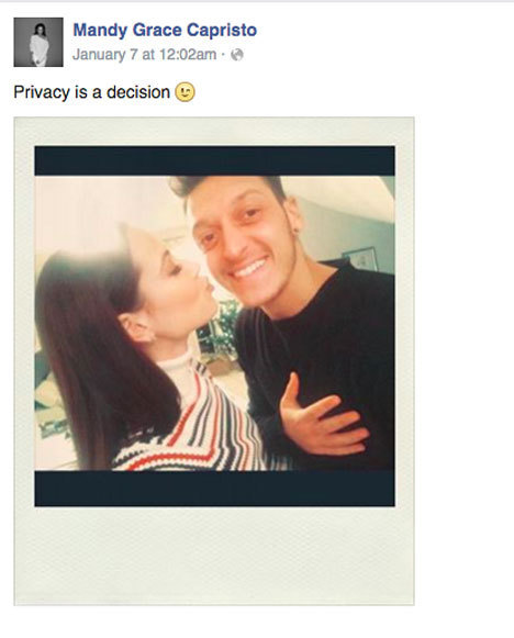 Berkaitan dengan hal ini, Mandy beberapa waktu lalu mengunggah sebuah foto dirinya bersama Ozil di akun Facebook pribadinya. Foto tersebut dilengkapi capiton, "Privasi adalah sebuah keputusan"