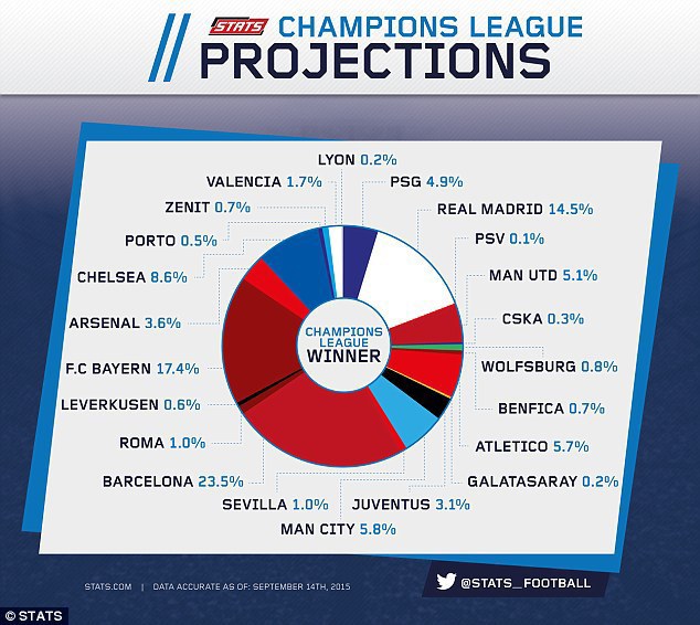 Bola.net - STATS baru saja melakukan analisa kemungkinan juara bagi klub-klub kontestan Liga Champions musim ini. Barcelona, sebagai juara bertahan masih memiliki kemungkinan tertinggi dengan angka 23,5 persen.