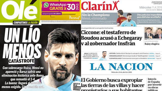 "Dia [Messi] akan berada di Rusia dengan tekanan yang berkurang pada tubuhnya tapi dengan rasa kecewa karena kalai di putaran final Liga Champions," tulis media Argentina, Ole.