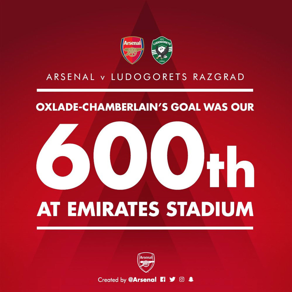 Milestone itu tercapai saat Alex Oxlade-Chamberlain mencetak gol ketiga Arsenal. Gol menit 46 yang membuat Arsenal unggul 3-0 tersebut adalah gol ke-600 (di semua kompetisi resmi) yang dicetak The Gunners di Emirates Stadium (sejak 2006).