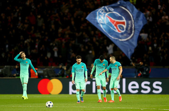 Pada leg pertama, Barcelona takluk oleh gol-gol Angel Di Maria (2), Julian Draxler dan Edinson Cavani. Barcelona secara mengejutkan dibuat tak berdaya dan tidak mampu membalas satu kalipun.