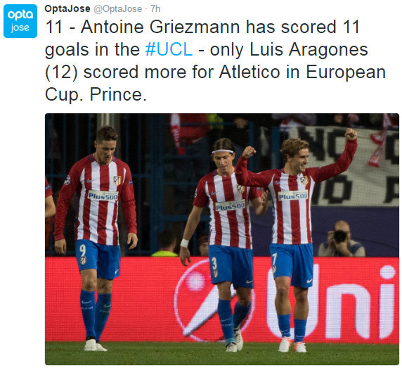 Melawan Rostov, Griezmann mencetak dua gol pertamanya di Liga Champions musim 2016/17. Itu merupakan golnya yang ke-10 dan 11 di kompetisi ini. Satu gol lagi, dia akan sejajar dengan Aragones.