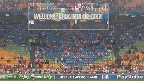 Ibrahimovic kemudian mendapat pertanyaan mengenai kepada siapa spanduk 'Selamat datang kembali anak Dewa' ditujukan.