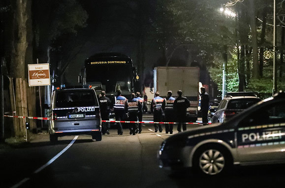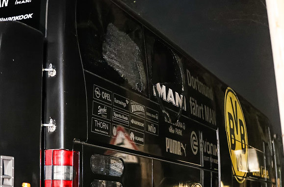 Tiga ledakan mengguncang bus tim Dortmund saat hendak berangkat ke stadion untuk menghadapi Monaco. Pemain timnas Spanyol Marc Bartra mengalami cedera akibat pecahan kaca dan harus menjalani operasi.
