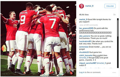 Di Instagram, Martial mengatakan: "Kemenangan yang bagus malam ini, terima kasih atas dukungan Anda semua."