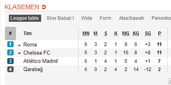 Roma menjadi pemuncak klasemen Grup C dengan koleksi 11 poin. Jumlah tersebut sama dengan yang dikumpulkan oleh Chelsea yang ada di posisi kedua. Tapi Roma unggul head to head dari dua pertemuan yang dijalani [3-3 / 3-0].