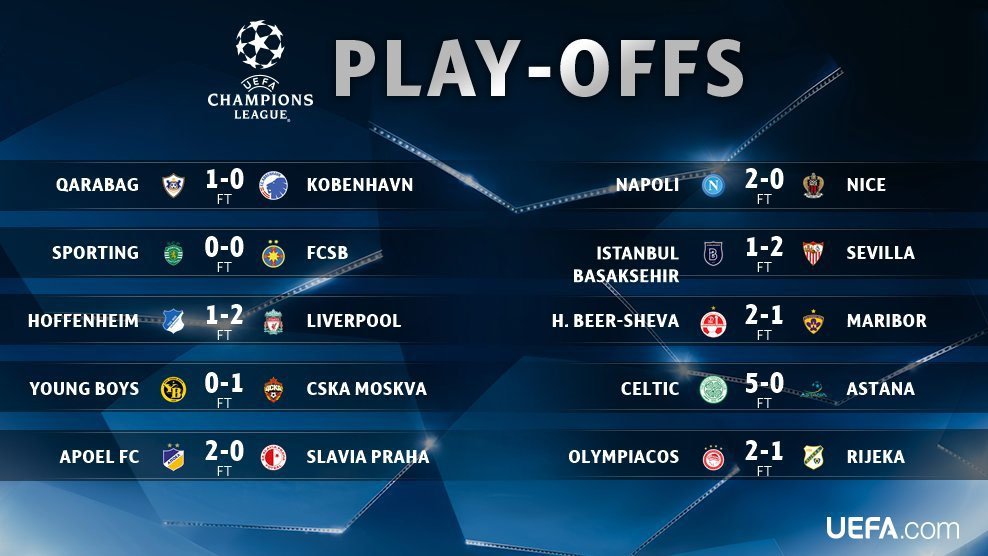 Tim-tim yang kalah di babak play-off ini harus rela terlempar ke fase grup Liga Europa.