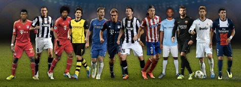 Bek: David Alaba, Giorgio Chiellini, Dante, Mats Hummels, Branislav Ivanovic, Philipp Lahm, Stephan Lichtsteiner, Filipe Luis, Vincent Kompany, Gerard Pique, Sergio Ramos, Thiago Silva.