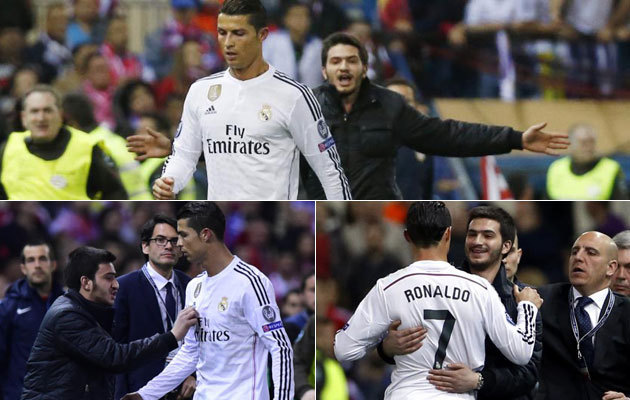Usai wasit meniup peluit akhir dan memastikan laga leg pertama babak perempat final Liga Champions tersebut berakhir imbang tanpa gol, seorang suporter tiba-tiba masuk ke lapangan dan menghampiri serta memeluk Ronaldo.