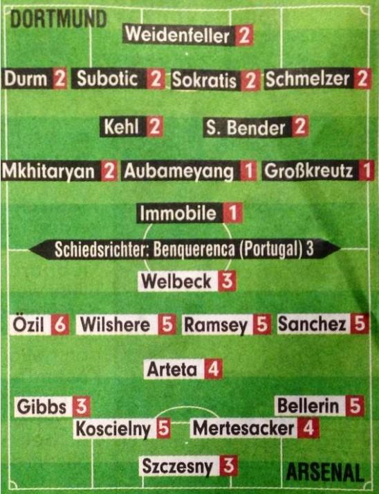 Ozil ditarik keluar oleh Wenger usai hanya bermain selama 63 menit di Signal Iduna Park. Bild kemudian mengeluarkan ulasan yang tak kenal ampun terkait performa sang pemain.