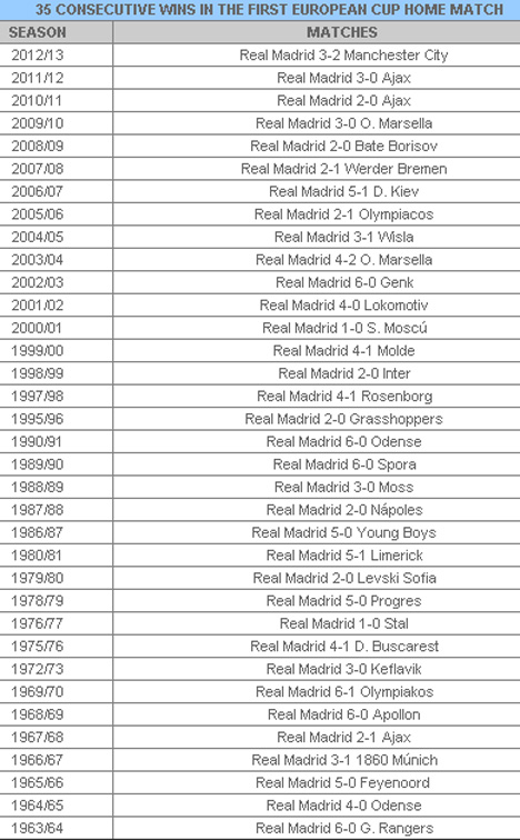 Pasalnya, Real Madrid memiliki catatan impresif. Selama 43 musim mengikuti kompetisi paling prestisius di Eropa ini, sang pemilik sembilan gelar tak pernah terkalahkan dalam laga perdananya di Santiago Bernabeu untuk setiap edisi. Rekornya adalah 41 kemenangan, 2 hasil imbang, dan tanpa kekalahan.