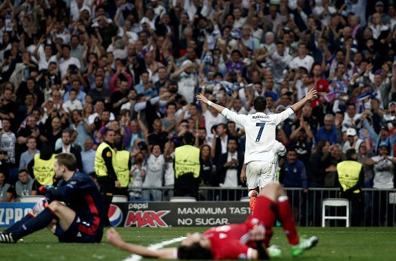 Real menang 3-0 menjamu Atletico di leg pertama babak semifinal Liga Champions 2016/17, Rabu (03/5). Ronaldo memborong tiga gol kemenangan sang juara bertahan pada menit 10, 73 dan 86.