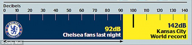 Namun menurut laporan yang diturunkan oleh Daily Mail, 642 fans Chelsea yang membeli tiket pertandingan away melawan Maribor telah berhasil membuat suara dengan tingkat keributan 92 desibel atau hampir setara dengan sebuah konser musik rock.