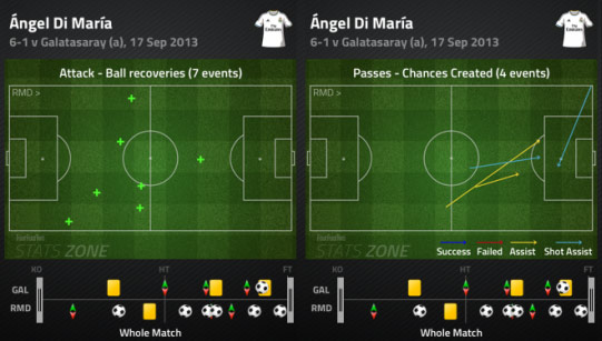Di Maria juga kuat dalam mode bertahan. Hal itu secara tidak langsung merupakan kompensasi atas penempatan Cristiano Ronaldo yang lebih ofensif di sayap sebelah. Sederet ball recovery yang dibukukan Di Maria adalah buktinya.