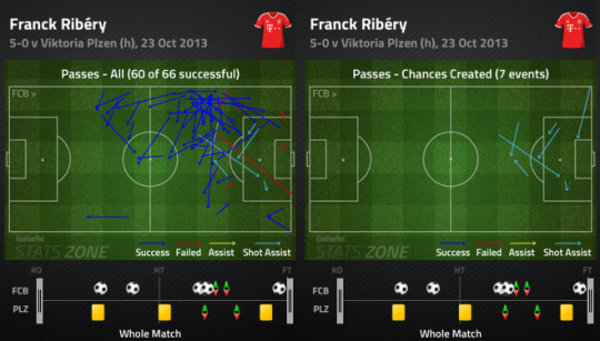 Di reverse fixture melawan Plzen pada matchday 4, Bayern sendiri menciptakan 22 peluang, dan Ribery menyumbang dua. Dia masih tanpa assist.
