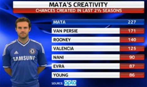 Sebagai perbandingan, dalam dua setengah musim terakhir saja, jumlah peluang yang diciptakan Mata mengungguli setiap pemain dari kubu United.