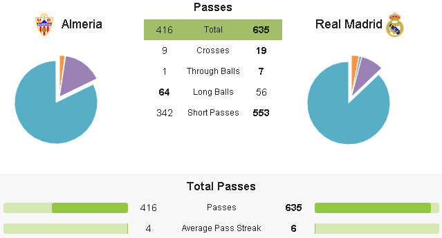 Dimotori Asier Illarramendi dan Xabi Alonso, Madrid mendominasi mutlak penguasaan bola dengan persentase mencapai 61%. Jalur serangan pun otomatis terbuka lebar. Madrid menekan dari segala penjuru dan menghasilkan total shot hampir tiga kali lipat lebih banyak daripada tuan rumah.