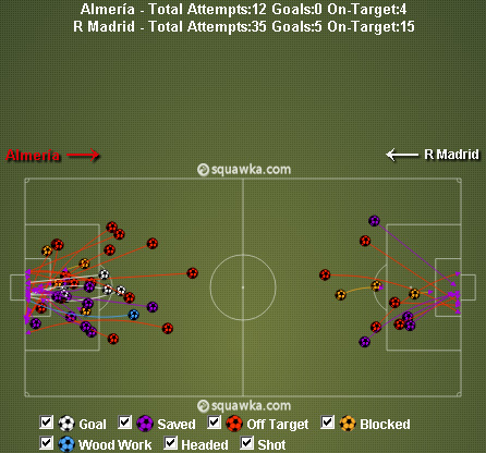 Madrid tetap menghuni peringkat tiga klasemen sementara dengan 34 angka, selisih tiga dari Atletico Madrid di posisi dua dan enam poin dari Barcelona di tempat teratas, sedangkan Almeria terdampar di papan bawah.