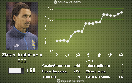 Namun, tak diragukan lagi, kontribusi Ibrahimovic adalah yang terbesar. Dengan skill ajaib bak seorang magician serta power dan insting golnya, yang terlihat jelas saat mencetak gol ketiga lewat tendangan keras dari jarak 25 meter, dialah pelakon terbaik di atas lapangan. Tiga gol yang diciptakannya pada menit 17, 22 dan 36 merupakan hat-trick tercepat kedelapan di Liga Champions.
