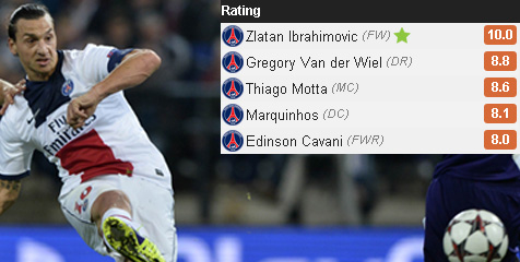 Kemenangan PSG tak lepas dari peran lima pemainnya. Gregory Van der Wiel bermain brilian di sayap kanan dan merancang dua assist dengan crossing untuk gol pertama serta kedua Ibrahimovic. Thiago Motta menguasai lini tengah dan mengirim through ball untuk gol keempat sang bintang Swedia. menjadi benteng tangguh pelindung area pertahanan dengan 4 tackle, 3 interception dan 2 clearance. Sementara itu, Cavani dengan kecepatannya turut menorehkan satu gol, gol keempat PSG hasil assist Blaise Matuidi.