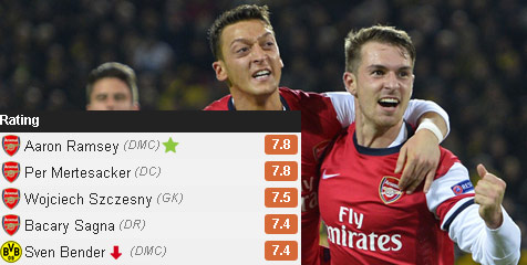 Gol ke-13 Ramsey di level klub dan tim nasional musim ini sudah cukup untuk memperpanjang catatan tak terkalahkan Arsenal dalam partai tandang di semua kompetisi menjadi 15 sekaligus membawa The Gunners memimpin grup bersama Napoli dengan raihan sembilan poin. Sementara itu, Dortmund duduk di peringkat tiga dengan enam angka dan dua laga tersisa.