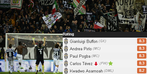 Berkat jangkauan operan Pirlo (12 long ball akurat, 3 key pass) serta penampilan apik Pogba (2 interception, 1 key pass, 2 shot, 2 on target, 1 gol), Tevez (3 dribel sukses, 4 shot, 3 on target, 4 key pass, 1 assist) dan Kwadwo Asamoah (3 dribel sukses, 7 interception, 6 crossing), serangan Juventus mengalir deras.