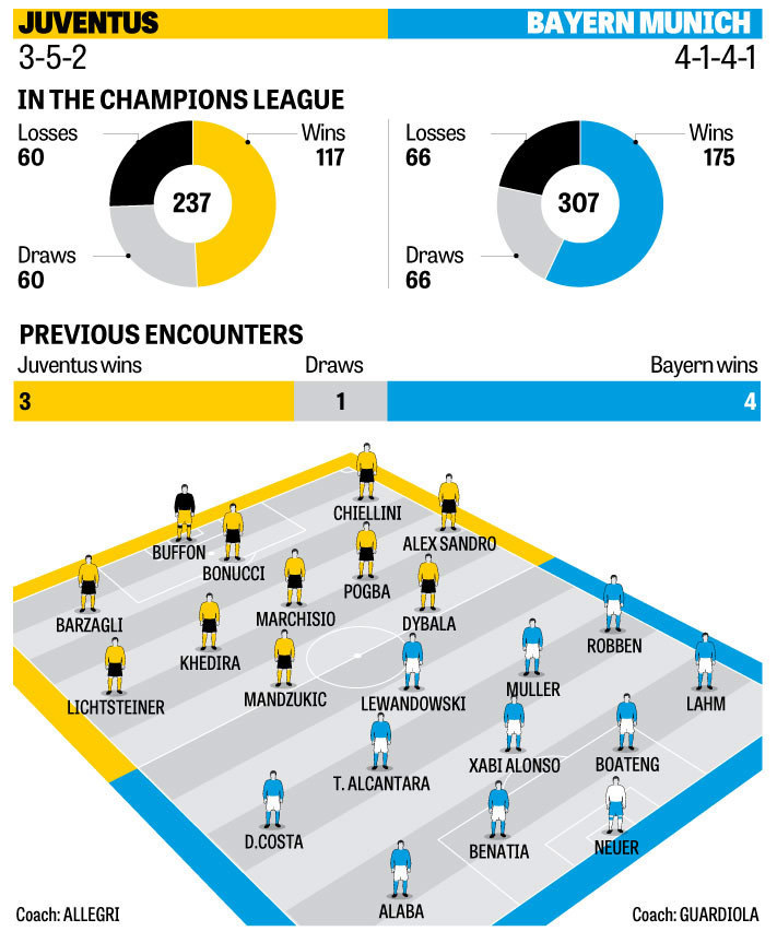 Juventus dipertemukan dengan raksasa Jerman Bayern Munchen, yang dianggap sebagai salah satu kandidat juara. Sementara itu, Roma harus menantang Real Madrid, sang pemilik sepuluh gelar.