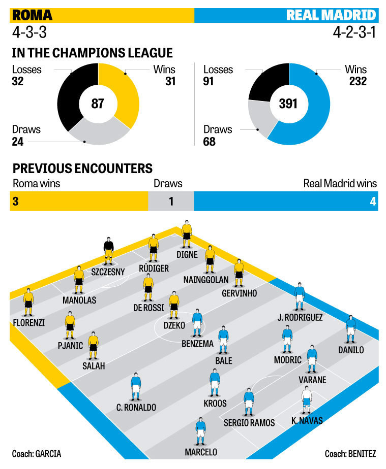 Sama seperti Juventus, menurut Prandelli, peluang Roma mengalahkan Real Madrid juga sekitar 40 persen. Prandelli juga mengingatkan Roma untuk tidak turun ke lapangan dengan niat hanya untuk bertahan.