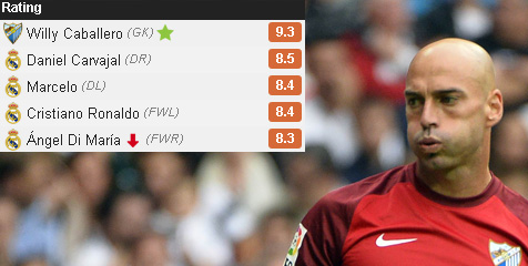 Bola.net - - Real Madrid bermain nyaris sempurna saat mengalahkan Malaga 2-0 di jornada 9 La Liga 2013/14. El Real bisa saja menang jauh lebih telak kalau bukan karena penampilan fenomenal Willy Caballero di bawah mistar.