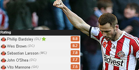 Gol tunggal penentu kemenangan The Black Cats di Stadium of Light, Minggu (10/11), diciptakan oleh bek kiri Phil Bardsley memanfaatkan assist rekannya yang sesama pemain bertahan, Wes Brown, pada menit 21.