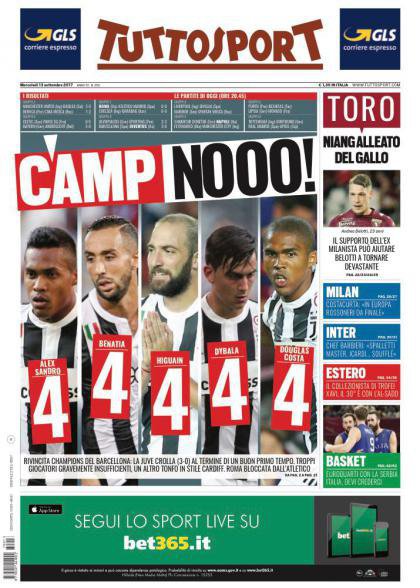 Tuttosport, media yang berbasis di Turin, bahkan rela memberi rating 4 untuk dua orang tersebut. Namun bukan cuma mereka. Alex Sandro, Mehdi Benatia dan Douglas Costa juga mendapatkan rating yang sama buruknya.