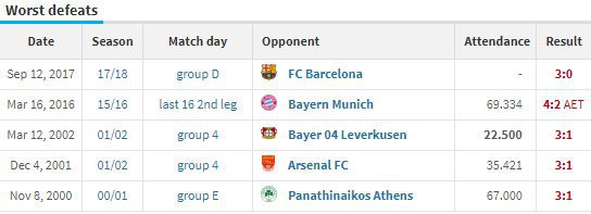 Sementara itu, bagi Juventus, ini adalah pertama kalinya mereka menelan kekalahan tandang 0-3 di European Cup/Liga Champions. Ini menjadi kekalahan tandang terbesar Bianconeri di kompetisi elit ini.
