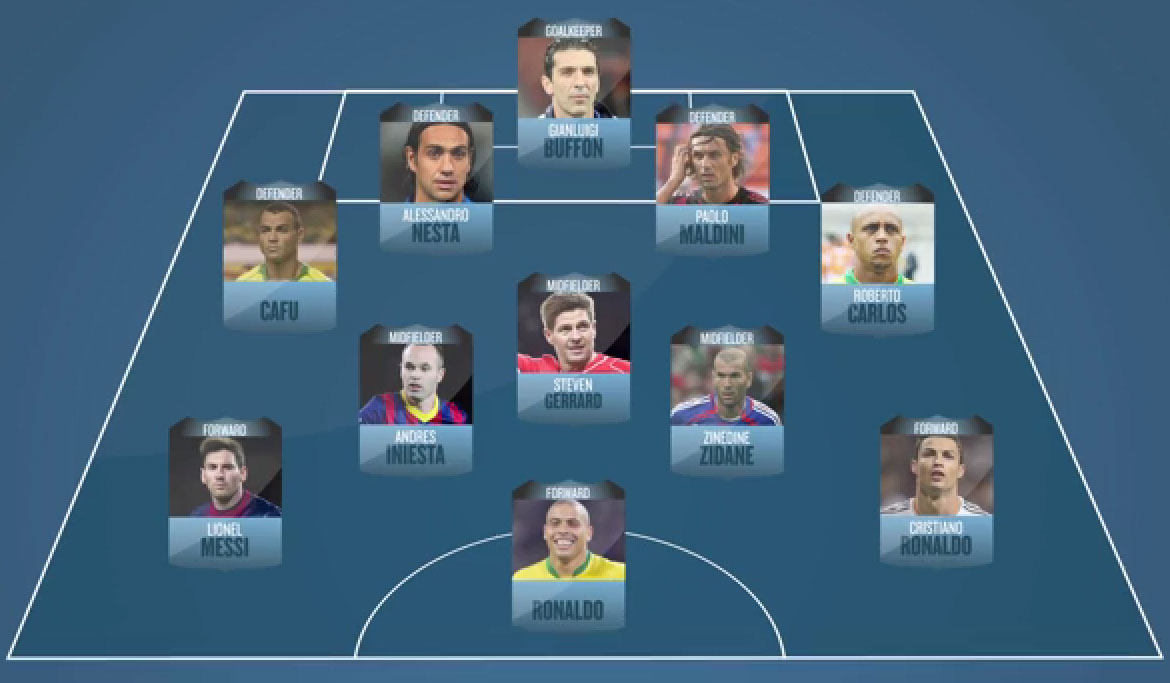 Termasuk di antaranya adalah mantan bek kiri Inter Milan dan Real Madrid Roberto Carlos, mantan maestro Juventus Zinedine Zidane serta striker legendaris Barcelona, Inter, Madrid dan AC Milan .