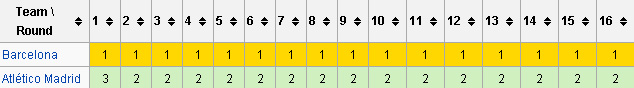 (Pergerakan kedua tim di klasemen sampai jornada 16 © Wikipedia)