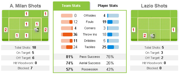 Lawan waktu itu adalah Udinese di San Siro. Milan menang 1-0 lewat gol tunggal Valter Birsa, padahal mereka menciptakan 12 shots ke gawang lawan. Hanya saja, dari jumlah itu, cuma 3 yang tepat sasaran.