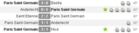 Dalam lima laga terakhir di semua ajang, Ibrahimovic mencetak sepuluh gol untuk PSG, termasuk di antaranya adalah quadruple sang striker ke gawang Anderlecht di Liga Champions.